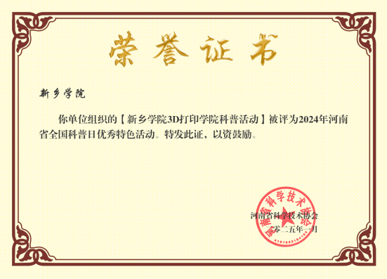 最终,我校的“3D打印学院科普活动”凭借其鲜明的特色,丰富的内容,显著的效果以及广泛的社会影响力 深夜在线电影,最终荣获2024年河南省全国科普日优秀特色活动称号。
