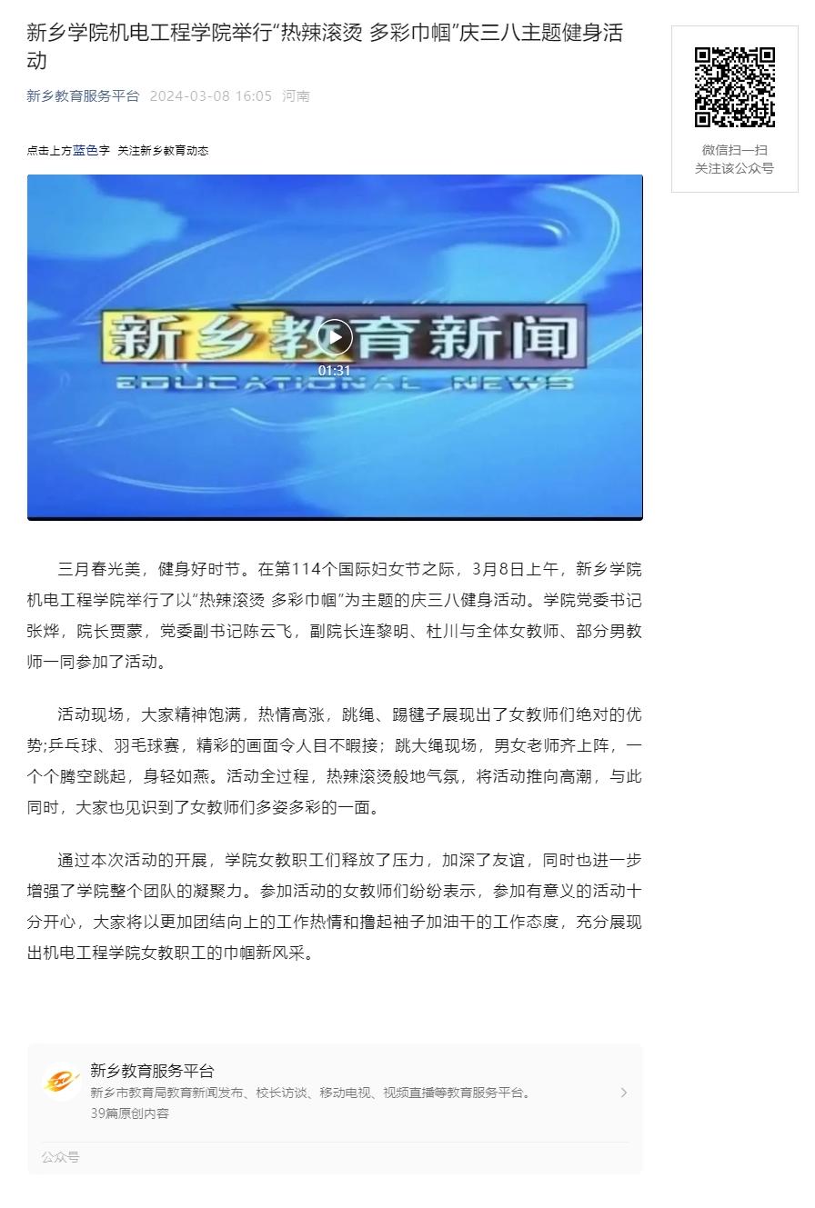上一条:新乡教育服务平台报道我校机电工程学院开展宿舍消防安全大排查及卫生环境大检查工作 下一条:《河南教育》(高等教育)杂志. 河南教育宣传网(学习强国号)发表我校党委书记孙功奇署名文章《学习贯彻习近平文化思想 践行新时代新的文化使命》 午夜电影在线观看.