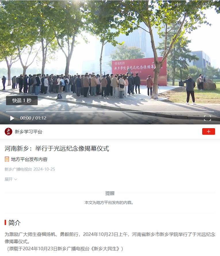 上一条:大象新闻客户端报道深夜在线电影举行校友会成立大会 下一条:河南省教育厅豫教思语官方微信公众号报道我校生物工程学院举办美食节