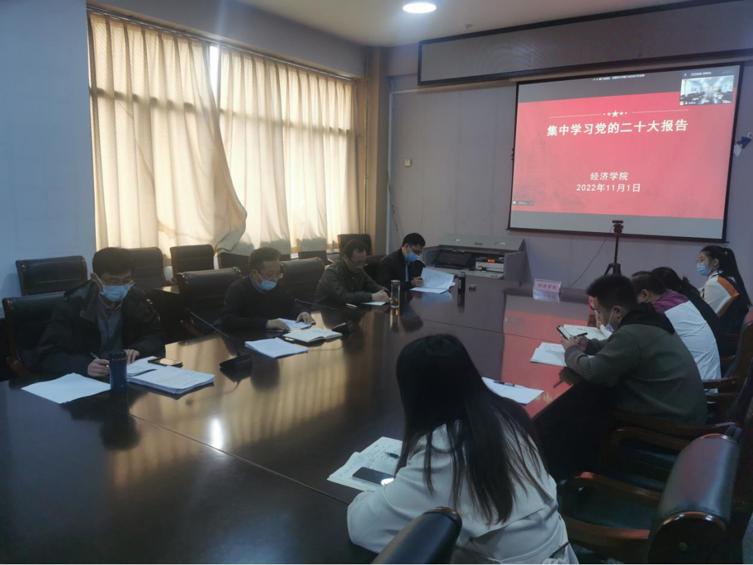 11月1日下午 午夜电影在线观看,经济学院党委理论学习中心组在学院会议室召开会议,专题学习党的二十大精神,会议由经济学院党委副书记陈卓主持,经济学院党委理论学习中心组全体成员参加。