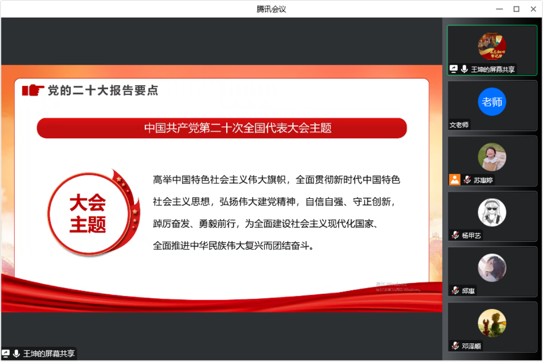 为深入学习宣传贯彻党的二十大精神,扎实推动党的二十大精神在学院落地见效 午夜电影在线观看,美术学院立足广大师生思想和工作实际,组织开展“党委委员宣讲二十大 凝心聚力共赴新征程”系列主题宣讲活动,11月17日,美术学院党委书记王坤通过腾讯会议平台为新确定的入党积极分子及学生党员做题为“学习党的二十大精神 做信仰坚定的青年大学生党员”专题讲座,开启本期系列主题宣讲活动第一讲。