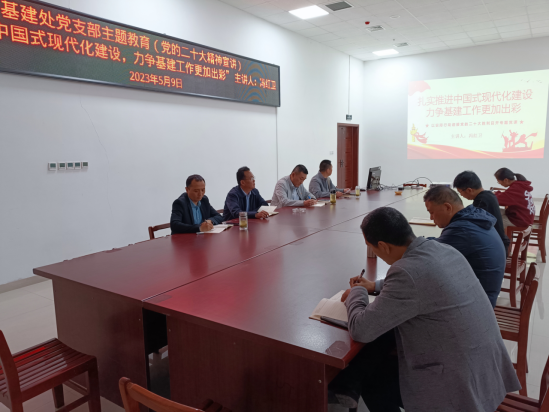 5月9日,基建处党支部学习贯彻习近平新时代中国特色社会主义思想主题教育专题学习交流会在基建处会议室召开,基建处全体党员参加 午夜电影在线观看,宣讲会由党支部书记程伟杰主持。