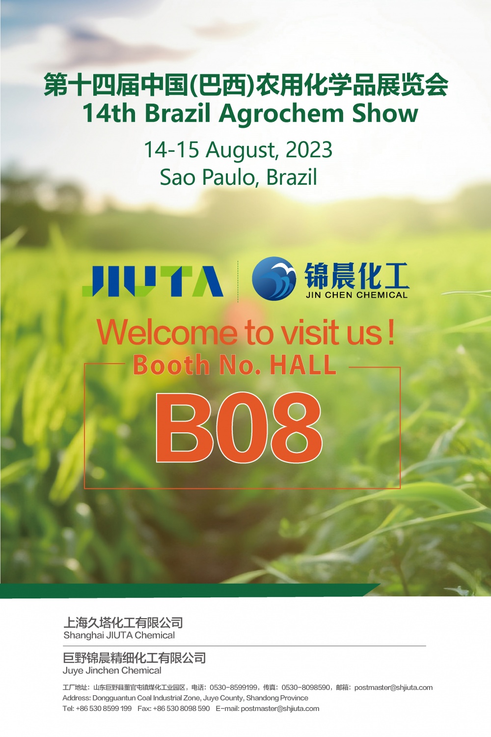 九塔化工将参加2023年第十四届中国(巴西)农用化学品展览会 ,该展会是巴西*专注于农化植保产品 无限观看草莓,设备及技术的专业展览会 .
