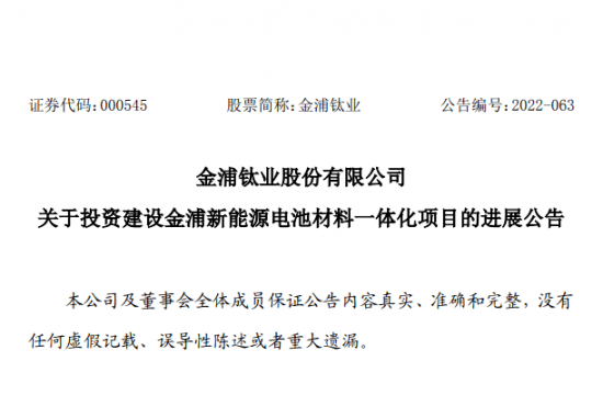 5月29日晚间,金浦钛业(000545.SZ)发布公告称,拟投资12.8亿元,用于建设20万吨/年电池级磷酸铁、20万吨/年磷酸铁锂等新能源电池材料一体化项目。