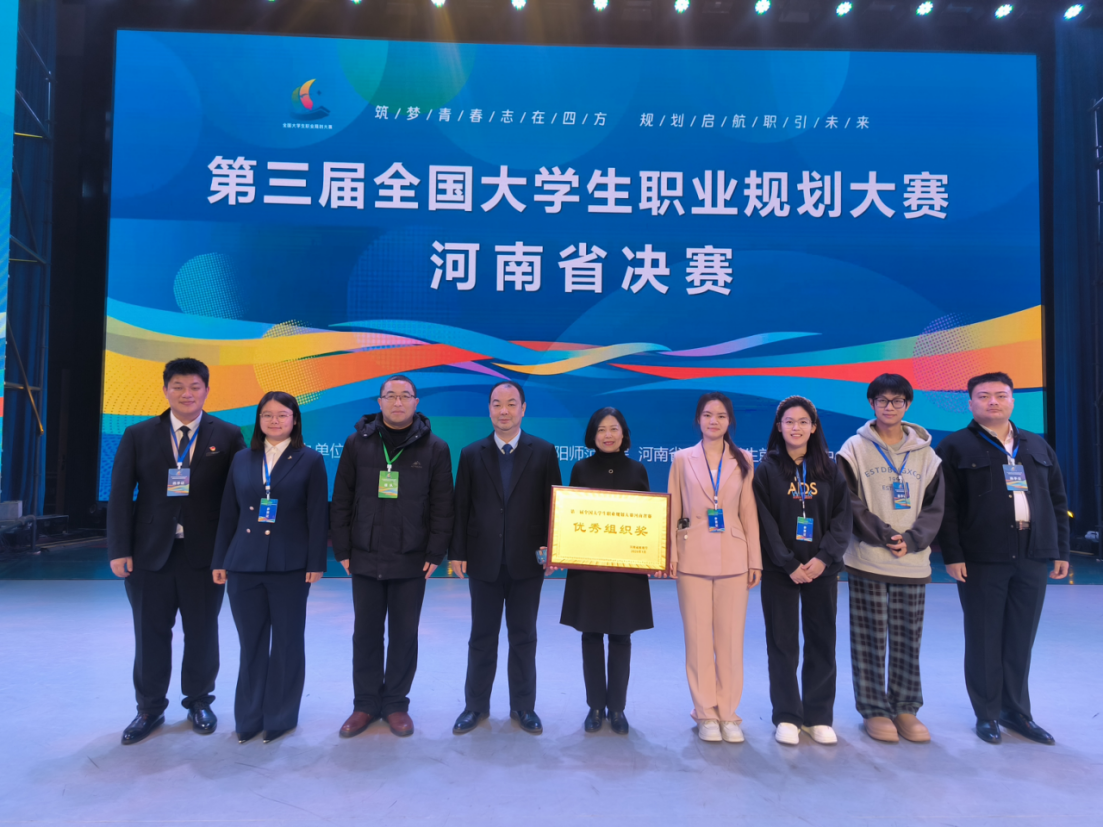 1月28日,第三届全国大学生职业规划大赛河南省决赛落幕,我校学生表现突出 午夜电影高清播放,斩获1金3银6铜,10名参赛选手全员获奖,获奖率达100%,同时,学校获评优秀组织奖,王凯凯,郝艺飞,崔琰三位教师荣获优秀指导教师奖。