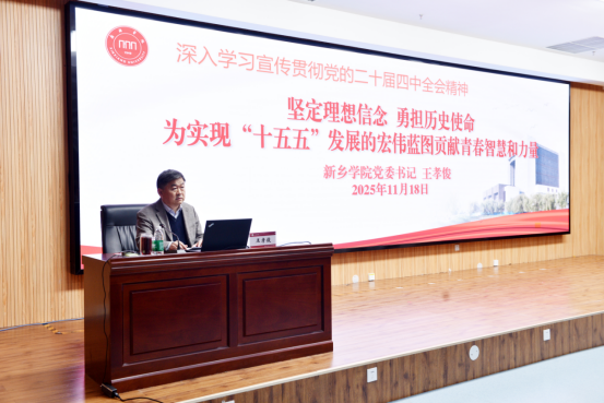 王孝俊以《坚定理想信念 勇担历史使命 为实现“十五五”发展的宏伟蓝图贡献青春智慧和力量》为题,从党的二十届四中全会的重要地位和深远意义,“十五五”规划的重要原则和战略部署以及在推进中国式现代化进程中青年的责任担当三个方面,紧密结合学校实际,学生实际,对全会精神进行了全面系统的宣讲和深入浅出的阐释 午夜在线影院。